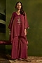 Featuring a magenta asymmetric kurta in tissue chanderi base with metal hangings and hand embroidery. It is paired with wide-leg pants and a slip. Accentuate it with statement earrings and heels for festive gatherings or wedding ceremonies.