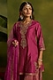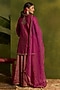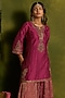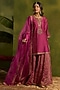 Featuring a magenta short kurta in stripe silk chanderi base with dabka and pearl hand embroidery. It is paired with tissue crushed chanderi sharara and a sheer organza dupatta. Accentuate it with statement earrings and heels for festive gatherings or wedding ceremonies.
