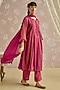 Featuring a magenta A-line kurta in tissue base with hand embroidery. It is paired with straight pants, a cotton slip and a crushed silk dupatta. Accentuate it with statement jewellery and heels for a festive look.