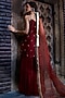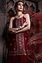 Featuring a maroon short kurta in silk base with thread and mirror embroidery. It is paired with matching chinon tiered sharara pants and a tissue dupatta.