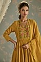 Mustard Chanderi Hand Embroidered A-Line Gathered Kurta Set