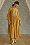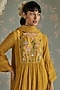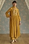 Featuring a mustard kurta in chanderi base with hand embroidery. It is paired with cotton pants and a chanderi dupatta. Accentuate it with statement jewellery and heels for a festive look.