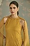 Featuring a mustard short kurta in chanderi base with floral, thread and hand embroidery. It is paired with embroidered gharara pants and an organza dupatta. Accentuate it with statement jewellery and heels for a festive look.