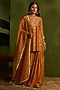 Featuring a mustard short kurta in silk and tissue base with dabka, pearl and thread hand embroidery. It is paired with silk gharara having sequins embroidery and a tissue embroidered dupatta. Accentuate it with statement earrings and heels for festive gatherings or wedding ceremonies.