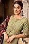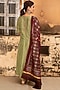 Featuring an olive green kurta in linen silk base with hand embroidery. It is paired with matching striped pants in tissue chanderi base and a silk patola dupatta.