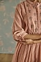 Featuring a pink gathered tunic in chanderi base with bead hand embroidery. It is paired with a slip and cotton pants. Accentuate with dangler earrings and heels for a complete look.