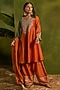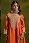Featuring a rust choga kurta in silk base with dori embroidery. It is paired with silk hand embroidered farshi salwar and an ombre tissue dupatta. Accentuate it with statement earrings and heels for festive gatherings or wedding ceremonies.