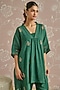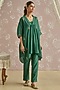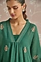 Featuring a teal kaftan in chanderi base with hand embroidery. It is paired with pants and a cotton slip. Accentuate it with statement earrings and heels for festive occasions.