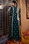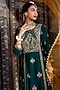 Featuring a teal A-line kurta in silk base with zardosi metal work. It is paired with matching tissue palazzo pants and an organza dupatta having pearl detailing.
