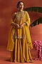 Featuring a yellow short kurta in silk base with dabka and pearl hand embroidery. It is paired with silk sharara having thread and sequins motif work and a silk organza stripe dupatta. Accentuate it with statement earrings and heels for festive gatherings or wedding ceremonies.