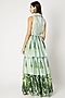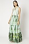 Featuring a green tiered dress in handloom silk base with hand screen printing. It has collar.
