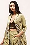 Mint Green Cotton Satin Floral Printed Long Jacket
