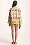 Featuring an olive green jacket in tissue organza base with lace and thread knot embroidery.