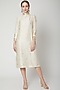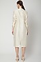 Featuring a white midi dress in spun silk base with banarasi weave and back slit.
