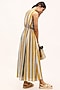 Featuring a yellow and blue dress in cotton silk base with printed stripes and side pockets.