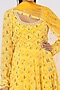Featuring a yellow anarkali in georgette base with hand embroidery. It is paired with matching stretch net churidar pants and a net.