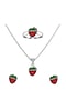 White Finish Enamelled Strawberry Necklace Set In Sterling Silver For Girls