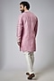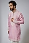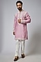 Featuring an english pink kurta in silk base with thread and beads hand embroidery. It is paired with contrasting off-white cotton silk pants.