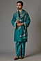 Featuring a peacock blue kurta in silk and viscose organza base with resham and cutdana embroidery. It is paired with loose pants and a dupatta. Perfect wear for festive occasions or wedding ceremony.
