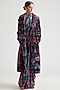 Featuring a teal saree in silk satin crepe base with print. It is paired with a silk velvet trench jacket. Accentuate it with dangler earrings and heels for a sangeet or wedding ceremony.