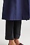 Featuring a medieval blue trench jacket in silk satin crepe base with zardosi embroidery. This contains only one piece.