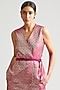 Featuring a mulberry pink suit in silk brocade base. It is paired with matching pants.