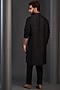 Featuring a black kurta in pure raw silk base with pintucks detail and anchoring work. It is paired with matching pants.