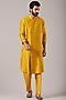 Featuring a mustard kurta in chanderi base with resham and zari embroidery. It is paired with matching pants.
