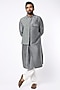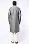 Featuring a grey textured jacket in spun silk base with a knit layer. It is paired with a matching kurta and pyjama pants.