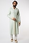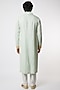 Featuring a light blue textured shirt kurta in spun silk base. It is paired with contrasting off white aligarhi pants.