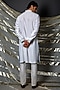 Featuring an off-white kurta in cotton and silk base with blue thread pintucks and pleating details. It is paired with matching pyjama pants.