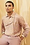 Featuring an oyster beige overlap tunic in silk and cotton base with gold geometric foil print. This only contains one piece.