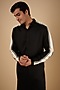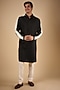 Featuring a black kurta in linen satin base with white stripes. Perfect wear for festive occasions.