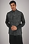 Featuring a charcoal grey nehru jacket in suiting base with thread embroidery. It is paired with pants. Style it with kolhapuri sandals for a festive gathering, sangeet and cultural celebrations.