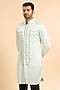 Featuring an ice blue kurta in linen satin base. Style it with pants and mojaris for a festive occasion, cultural event, wedding, engagement or sangeet ceremony.