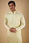Featuring a lime yellow kurta in linen satin base. Style it with pants and juttis for a puja ceremony or festive evening party. Perfect wear for festive occasions.