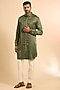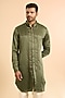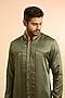 Featuring a washed olive kurta in linen satin base. Style it with pants and mojaris for a festive occasion, cultural event, wedding, engagement or sangeet ceremony.