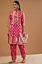 Featuring a blush pink kurta in banarasi brocade base. It is paired with matching pants.