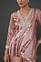 Featuring a peach short kurta in georgette base with sequins and bead work. It is paired with shimmer pants. Style it with dangler earrings and heels for a pre-wedding or festive occasion.