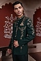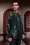 Hunter Green Lycra Jacquard Beads Embellished Bandhgala Set