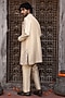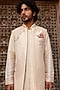 Featuring a rose gold indo-western jacket in zari satin base with french wire and stones embroidery. It is paired with a kurta and trousers. Style it with a statement brooch and polished footwear for added elegance. Ideal for weddings, cocktail nights, and formal pre-wedding events.