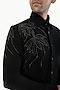 Black Blended Rayon Motifs Embroidered Shirt