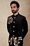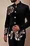 Featuring a black bandhgala jacket in velvet base with floral embroidery. It is paired with matching pants.