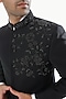 Deep Black Blended Rayon Floral Motifs Bandhgala Set