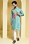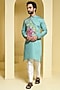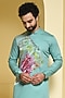 Featuring a pastel green kurta in cotton base with organza detail. It is paired with pants. Accentuate it with juttis and a watch for a mehendi ceremony or festive occasion, exuding traditional charm and elegance.