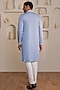 Featuring a powder blue kurta in cotton base with floral embroidery and threadwork. It is paired with pants. Style it with loafers for a festive occasion, pre-wedding function or an intimate pooja ceremony.