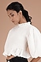 Featuring a white crop top in cotton seersucker base with smocking. This contains only one piece.