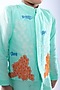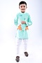 Featuring an aqua blue bandhgala jacket for boys in bamberg silk and cotton satin base with threadwork embroidery. It is paired with a kurta and white pyjama pants. Style it with a watch and pair of mojris for a wedding, sangeet or engagement ceremony.