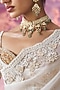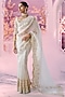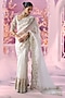 Featuring an ivory saree in organza base with cutwork embroidery, floral motifs and paisley design. It is paired with a net blouse. Accentuate it with statement jewellery, a sleek hairstyle, and embroidered juttis or heels for festive occasions or wedding ceremony.