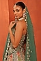 Featuring a dusty blue lehenga in organza base with mirror and pearl embroidery. It is paired with a structured corset blouse and a dupatta. Accentuate it with statement jewellery and heels for a reception, wedding, engagement or sangeet ceremony.